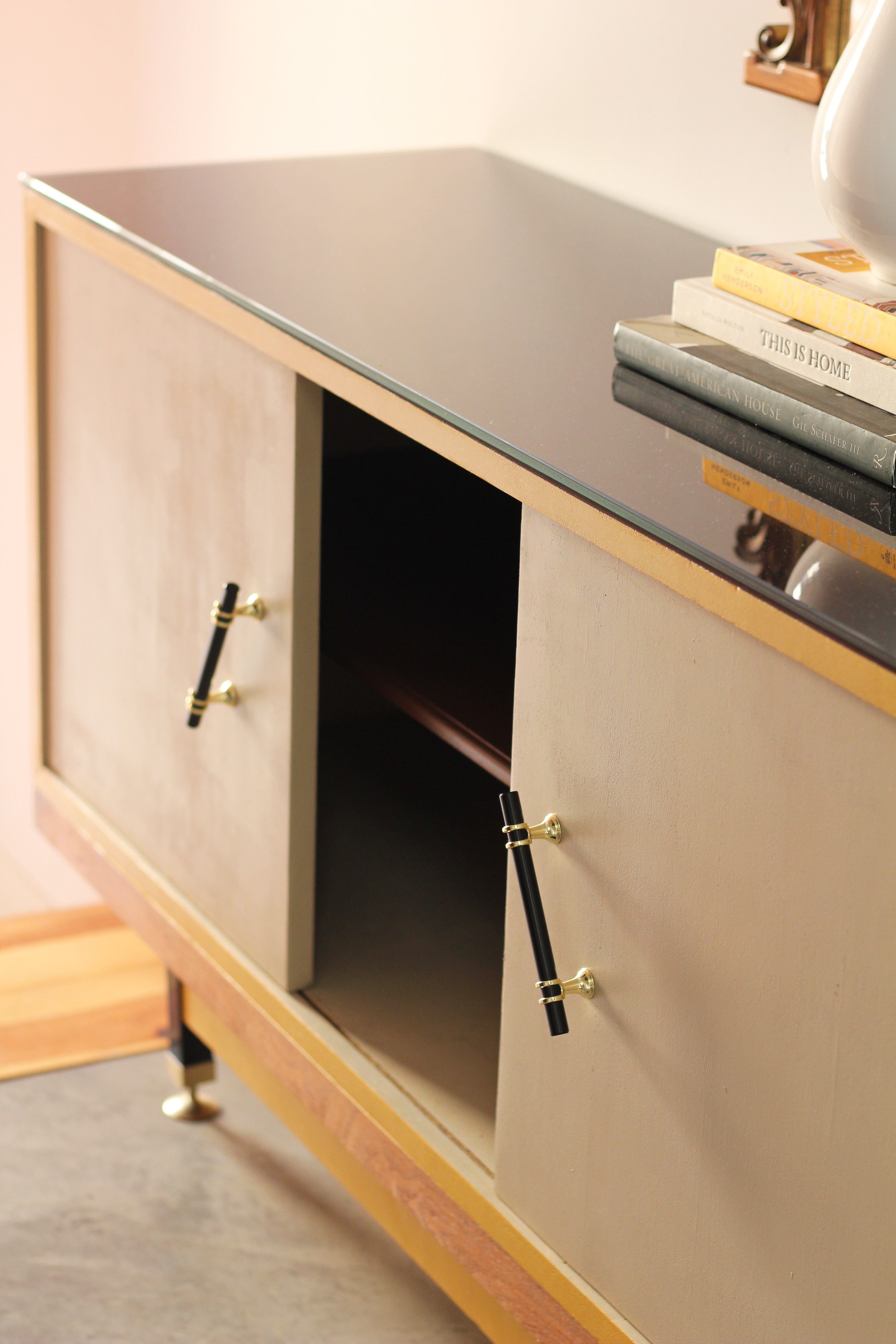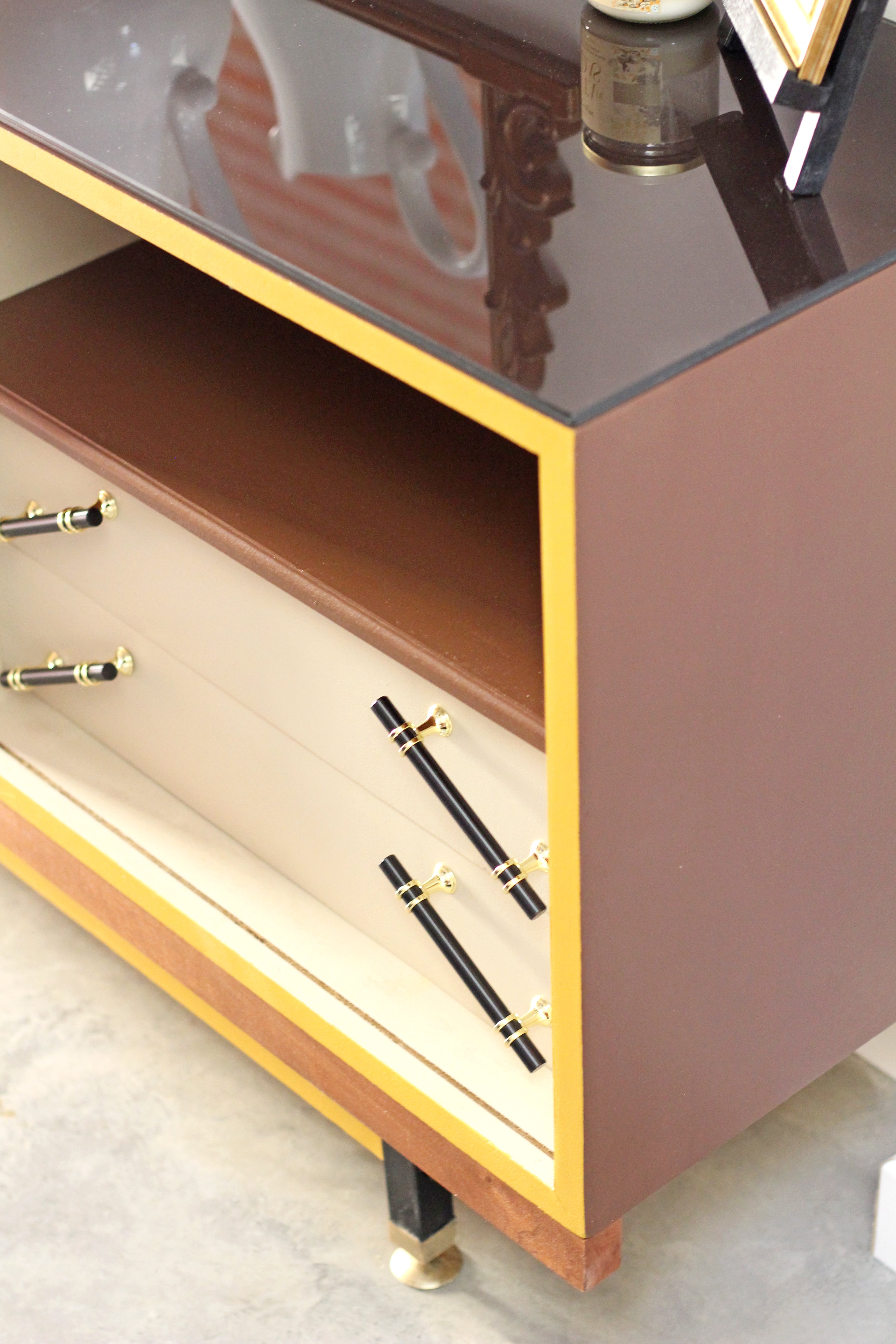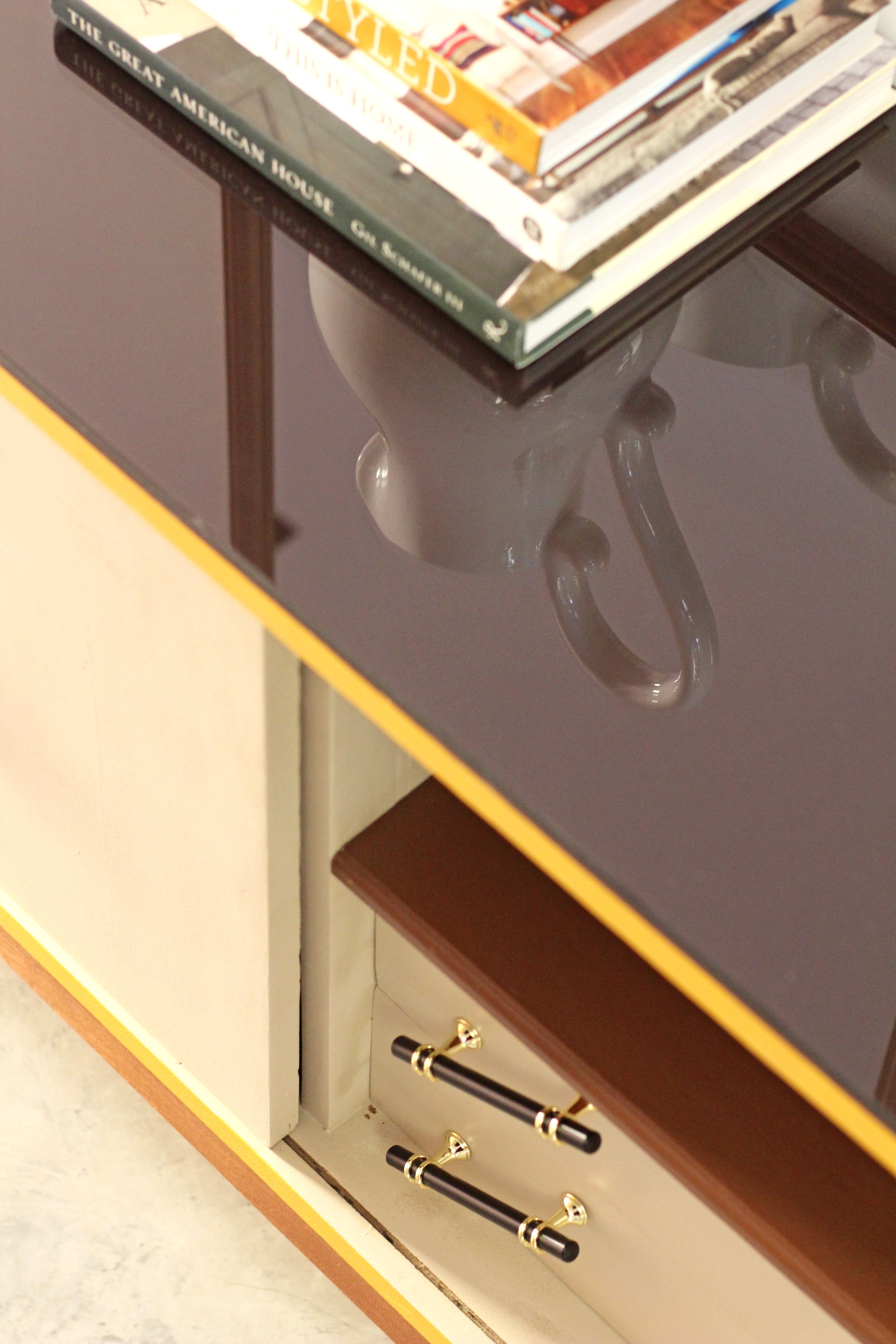 Aparador de estética mediados de siglo XX, el cual se caracteriza por líneas y acabados limpios de estética sencilla y sin demasiada decoración, así como por su funcionalidad.
