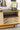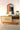 En tonos marrones y ocres y rematado con cristal negro translúcido.