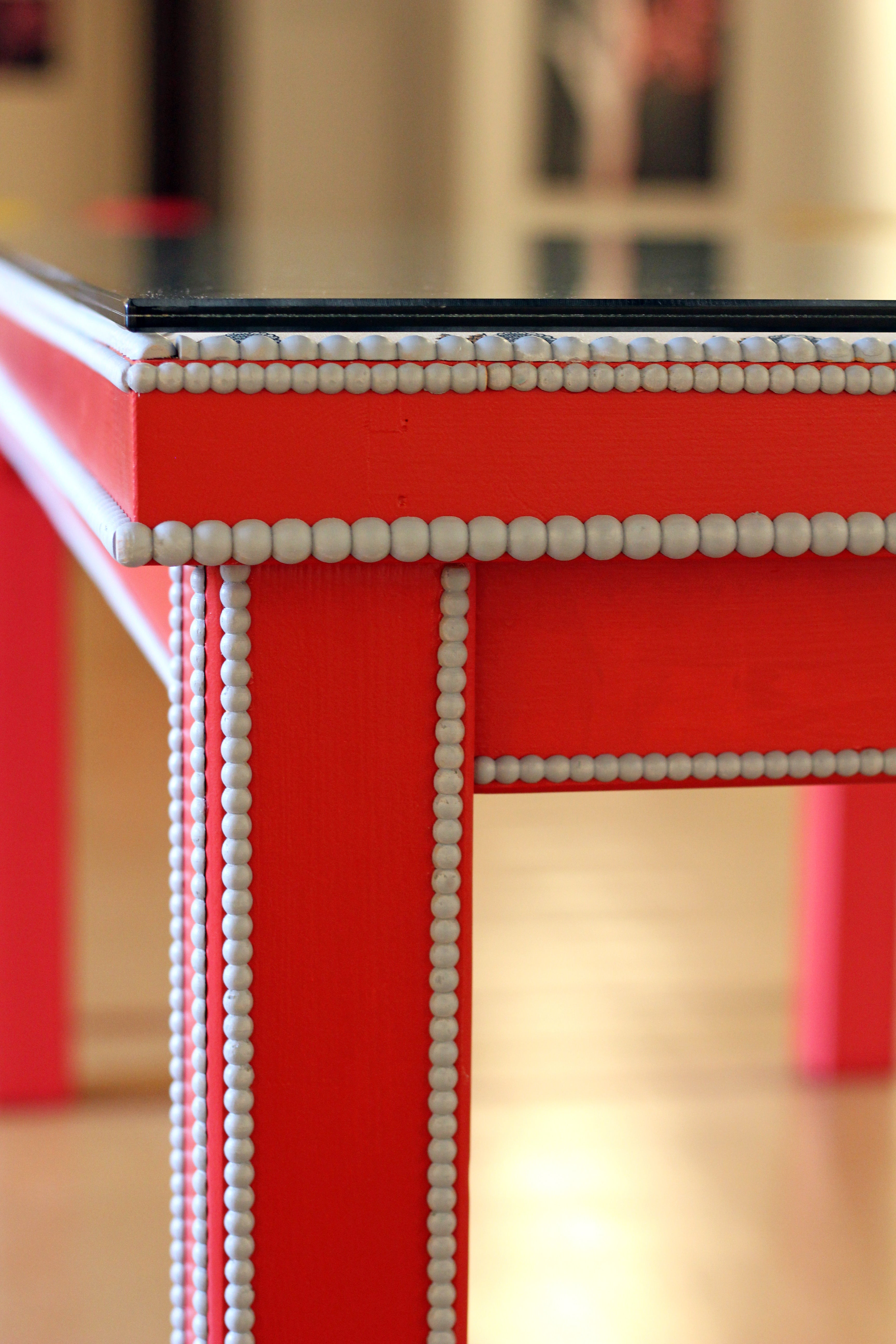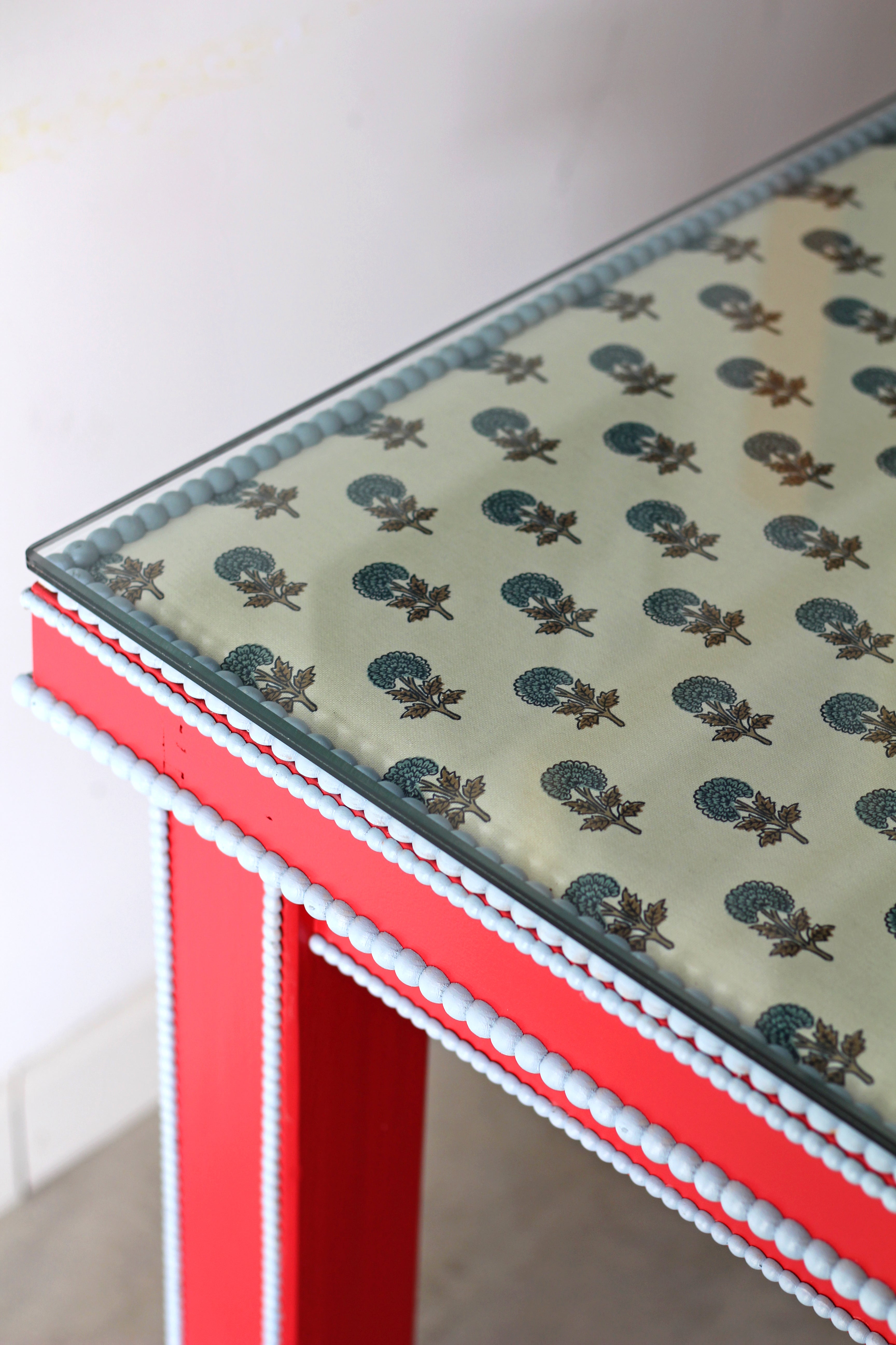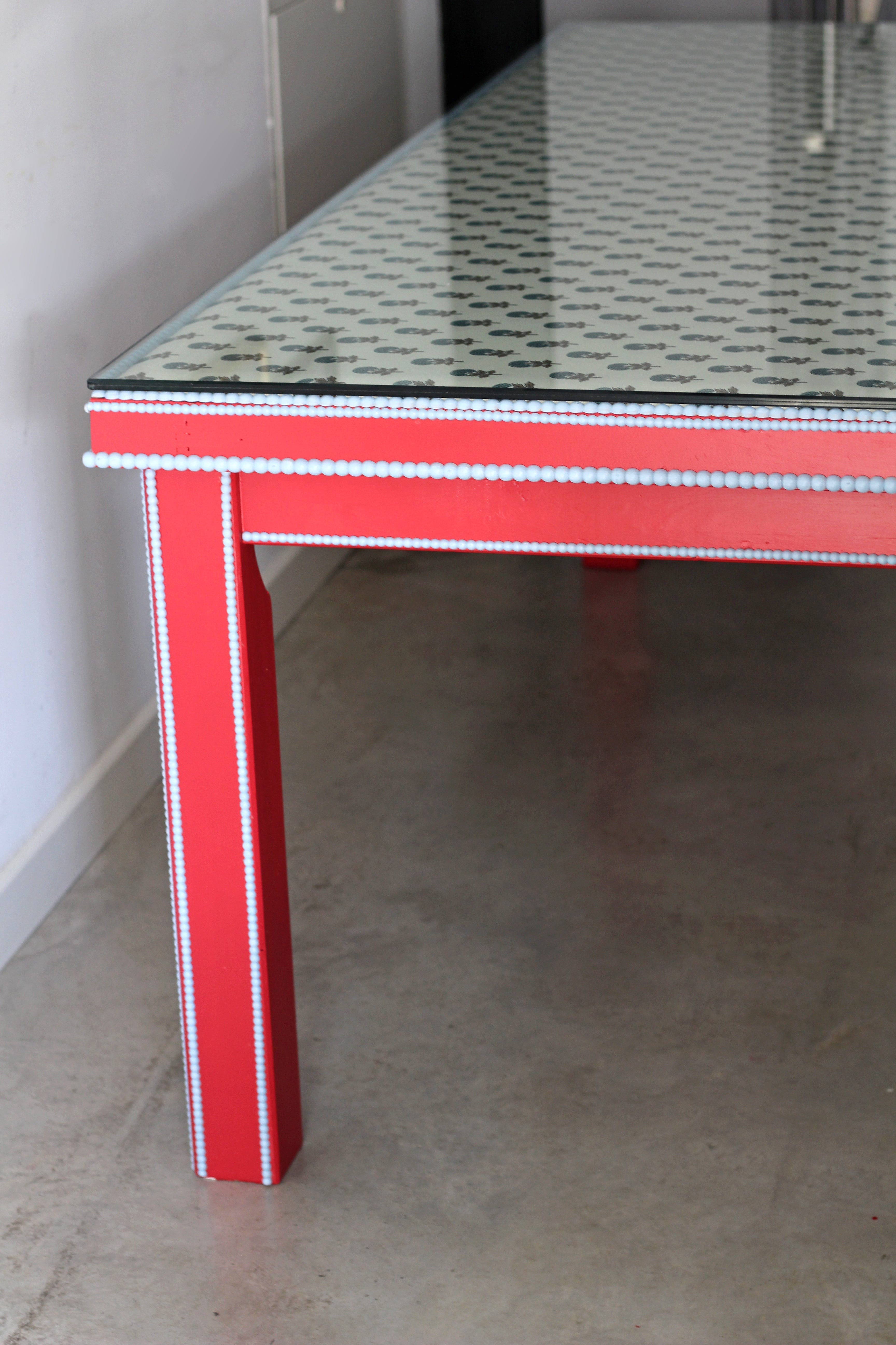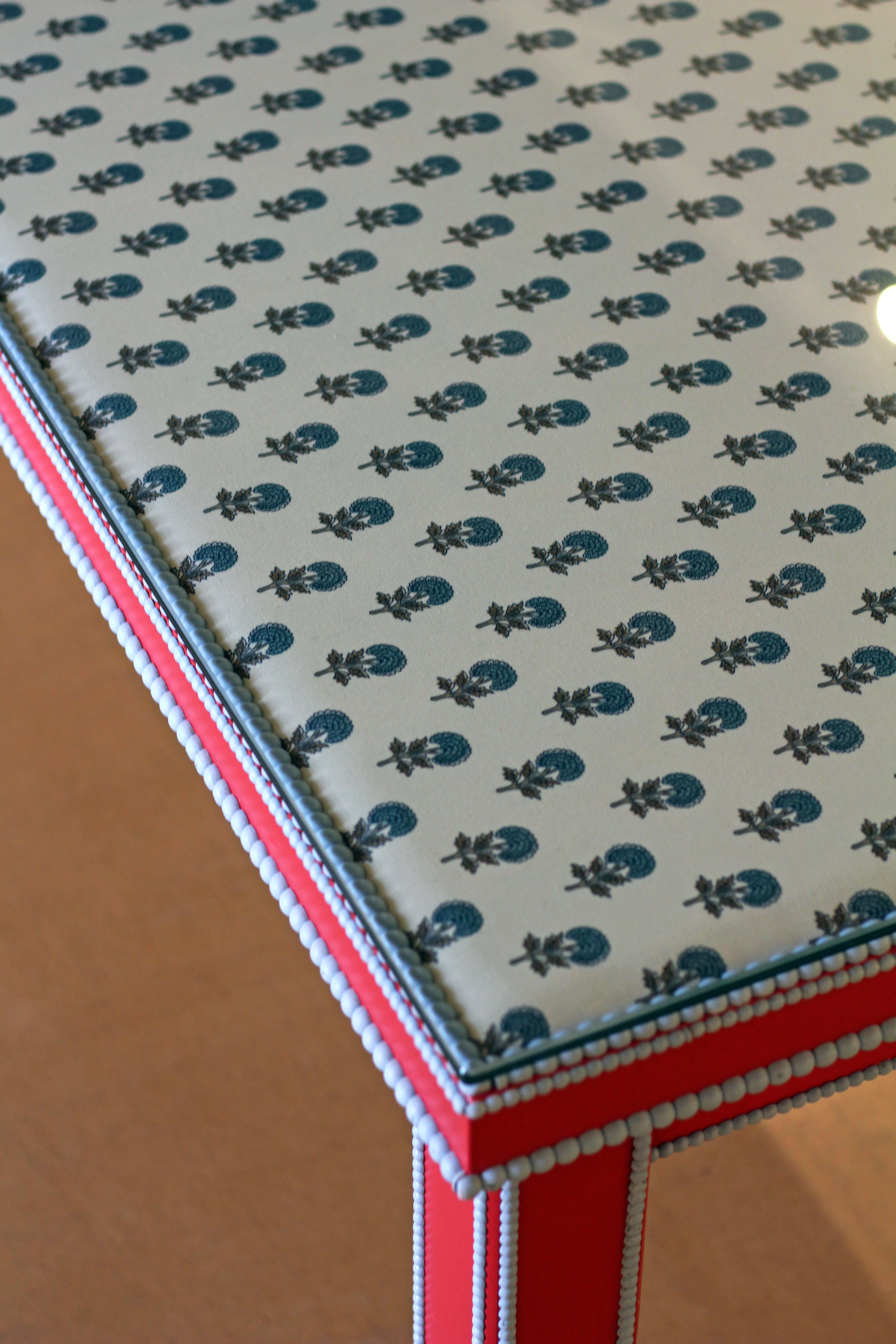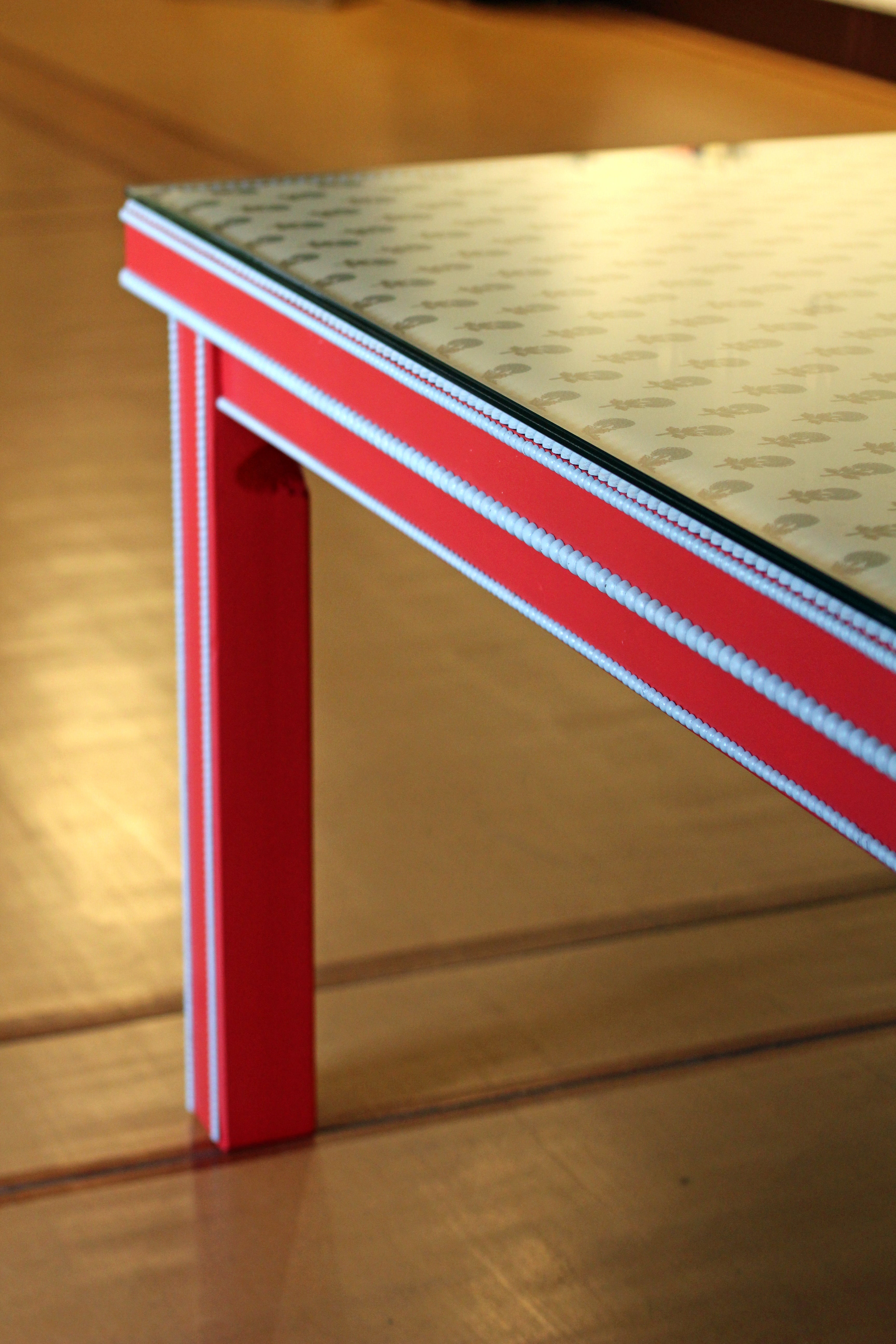 Para proteger el tapizado, la mesa cuenta con un resistente cristal de 12mm de grosor.