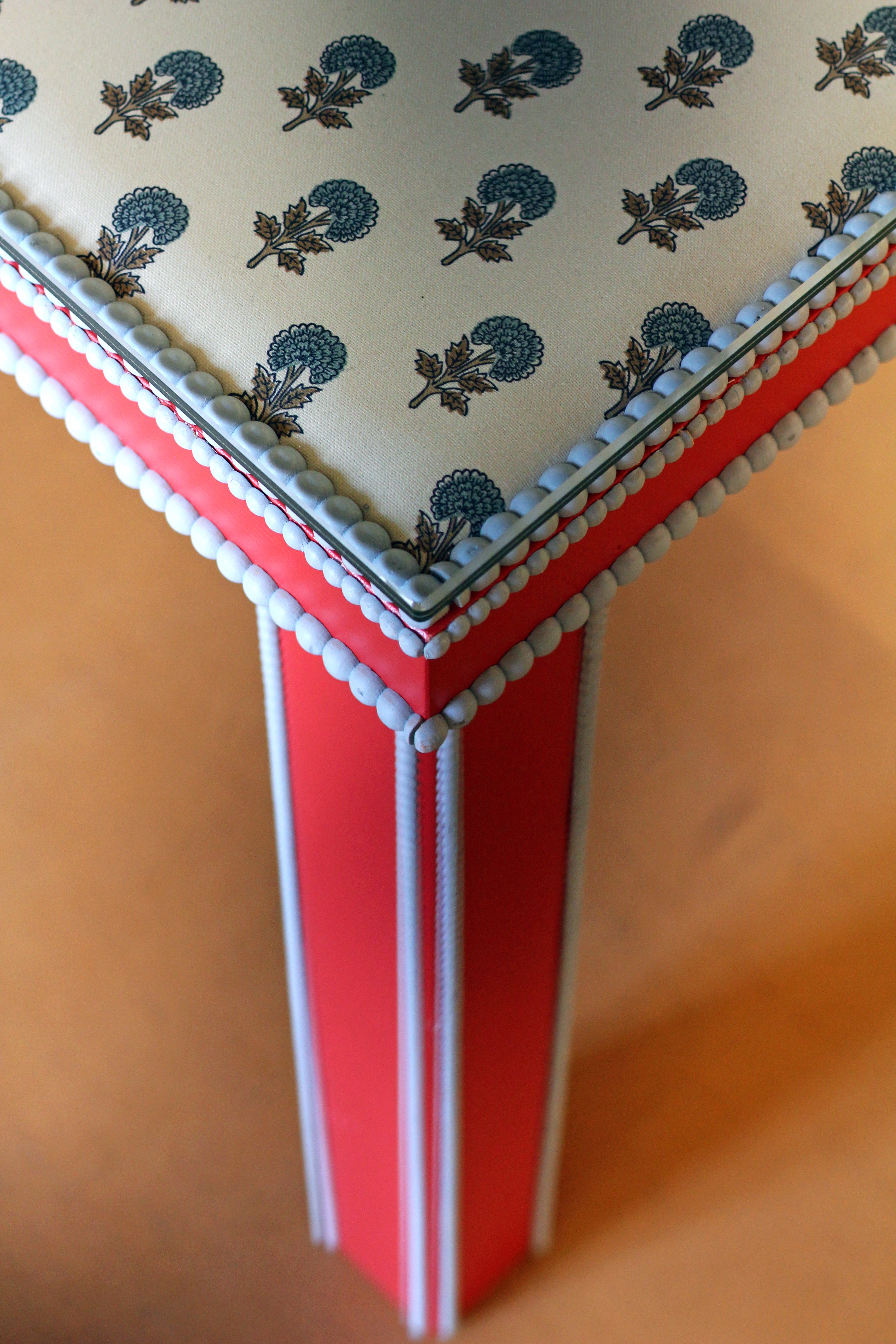 Tapizada con loneta de algodón 100% y adornada con molduras de decorativas de madera.